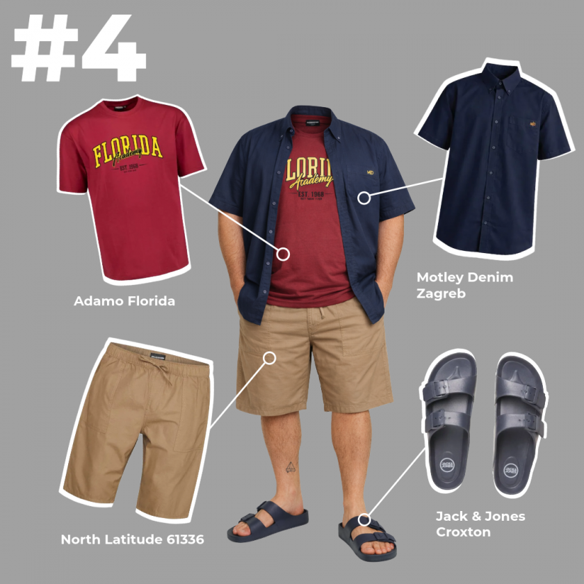 Helppo asu lämpimämpiin päiviin. Edestä avoin paita näyttää tyylikkäältä ja tuntuu ilmavalta, shortsit pitävät kokonaisuuden rennon mukavana, ja sandaalit sopivat hyvin aurinkoisiin päiviin.