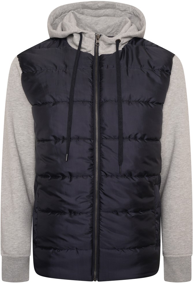 Koko-opas - Kam Jeans KV135 Quilted Zip Thru Hoody with Padded Body & Jersey Sleeves Navy