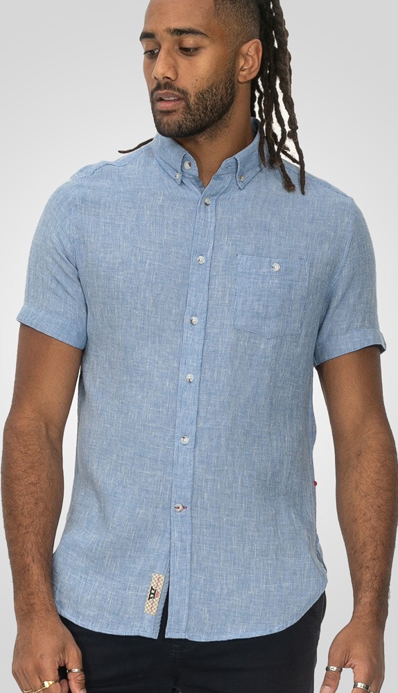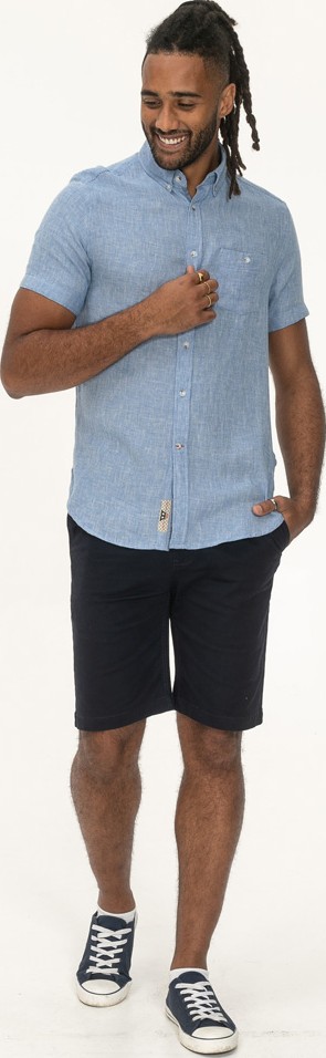 Koko-opas - D555 Falmouth 1 Linen Mix Short Sleeve Shirt With Button Down Blue