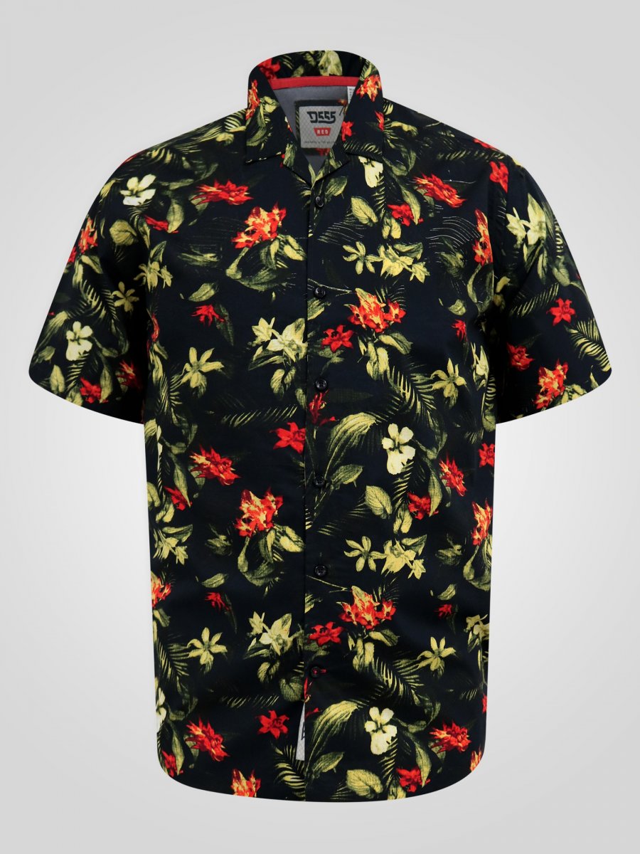 Koko-opas - D555 Gordon Hawaiian AOP Cuvan Collar Resort Short Sleeve Black