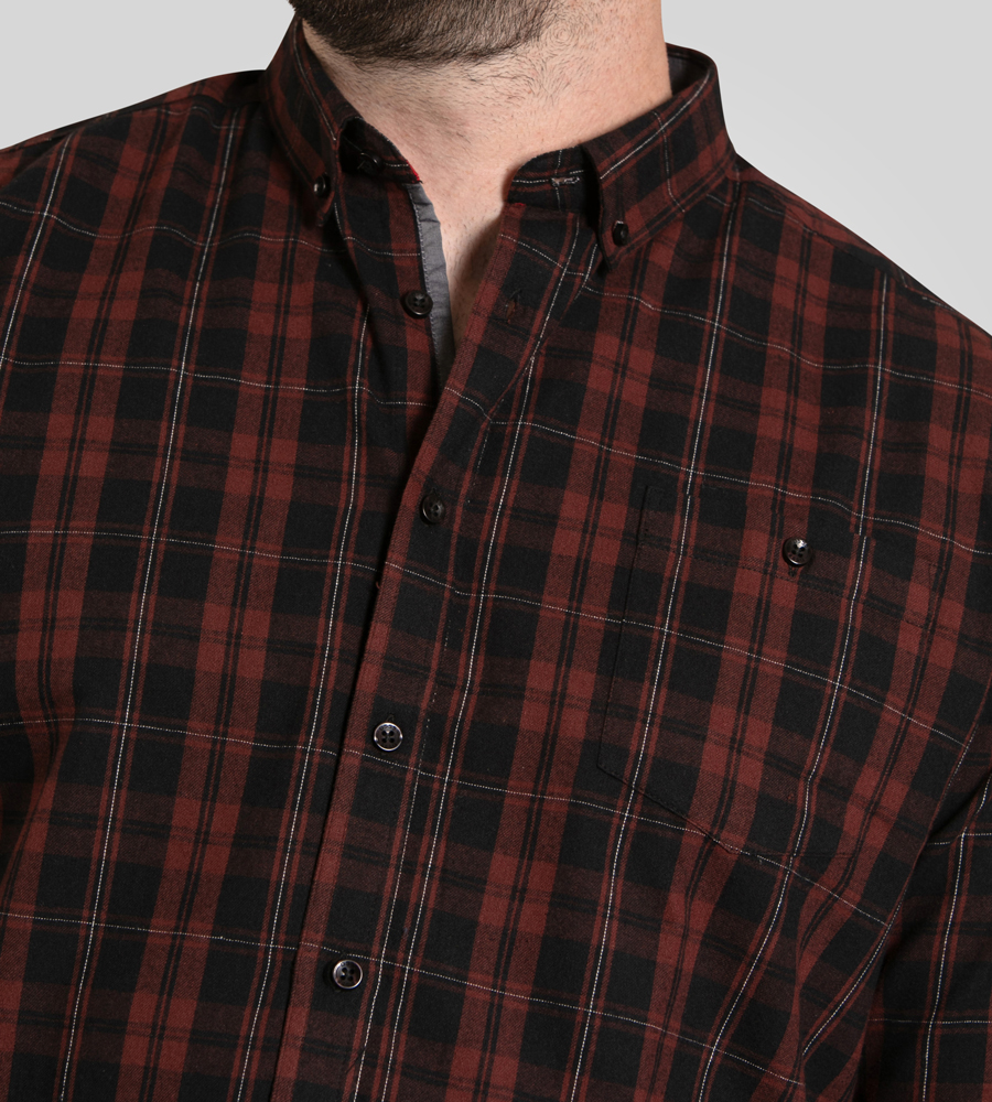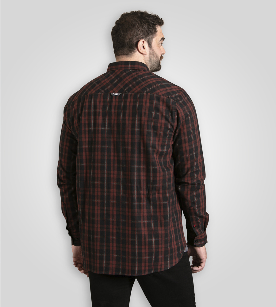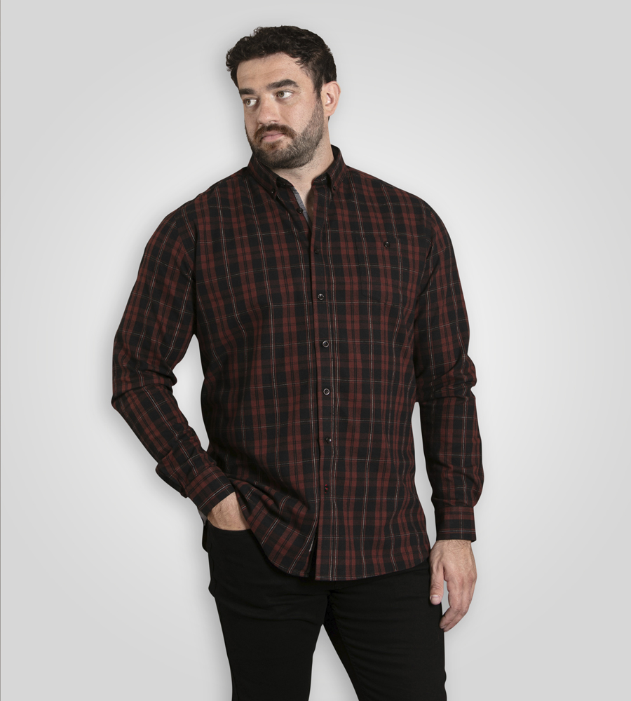Koko-opas - D555 Horsham Long Sleeve Shirt with Chest Pocket Burgundy/Black Check