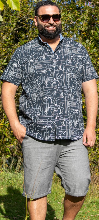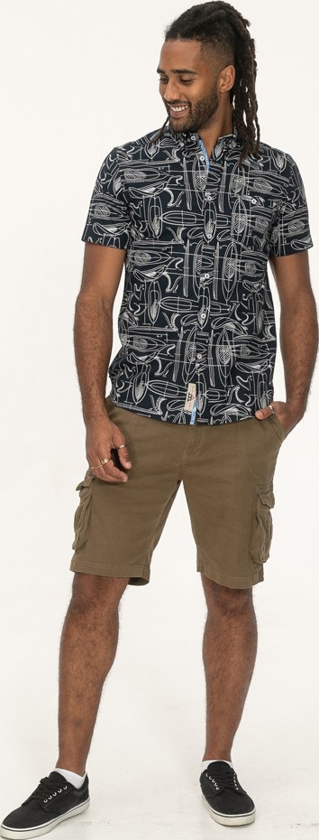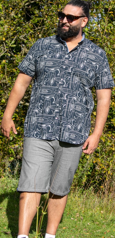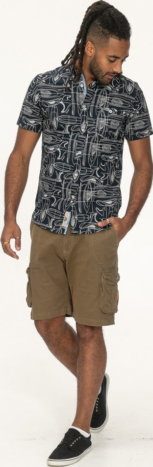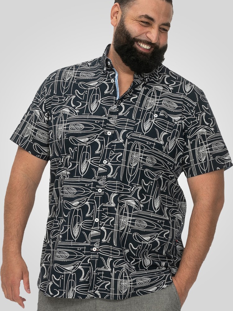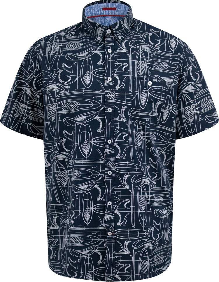 Koko-opas - D555 Worthing Surf AOP Short Sleeve Button Down Collar Shirt Navy