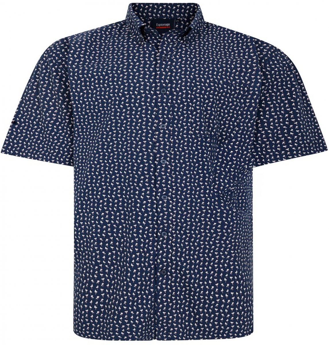 Koko-opas - Espionage SH439 Mini Flamingo Printed Short Sleeve Shirt Navy