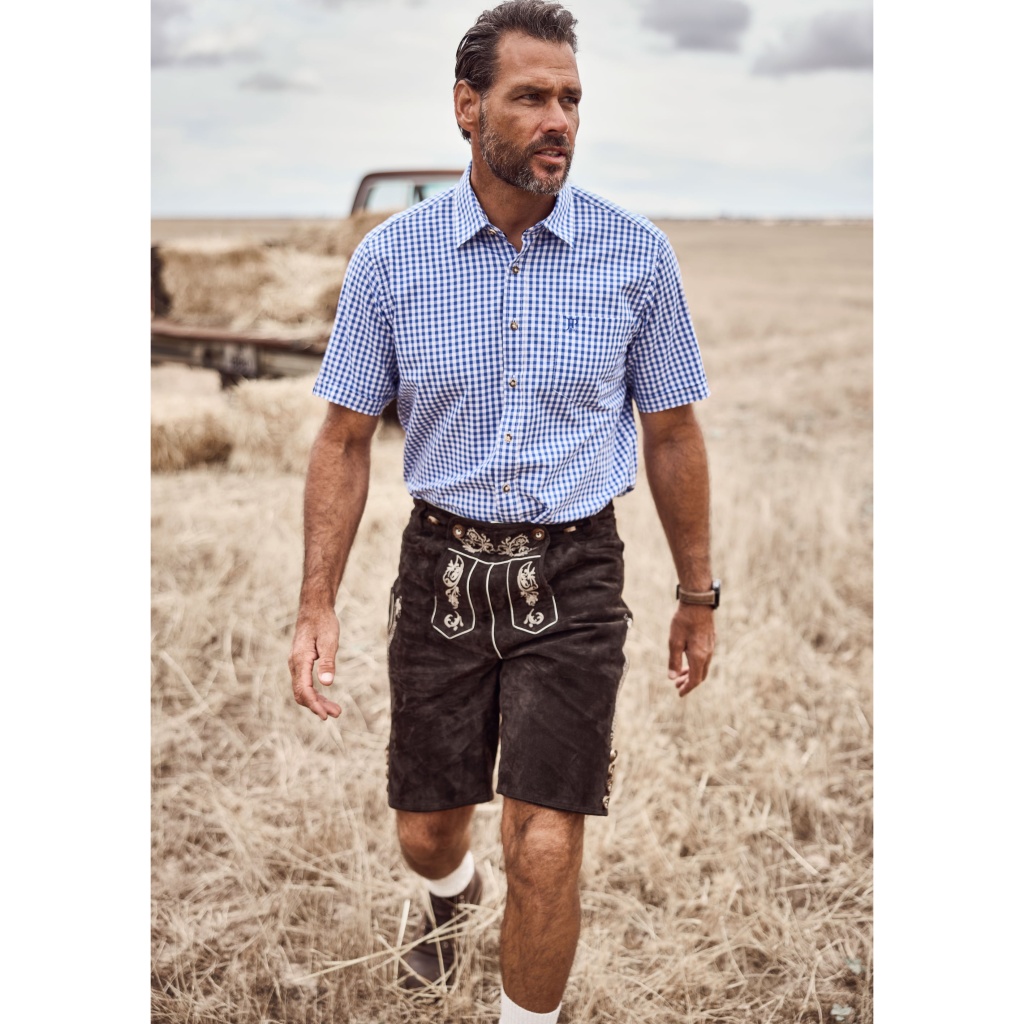 Koko-opas - JP1880 Short Sleeve Check Print Traditional Shirt Blue