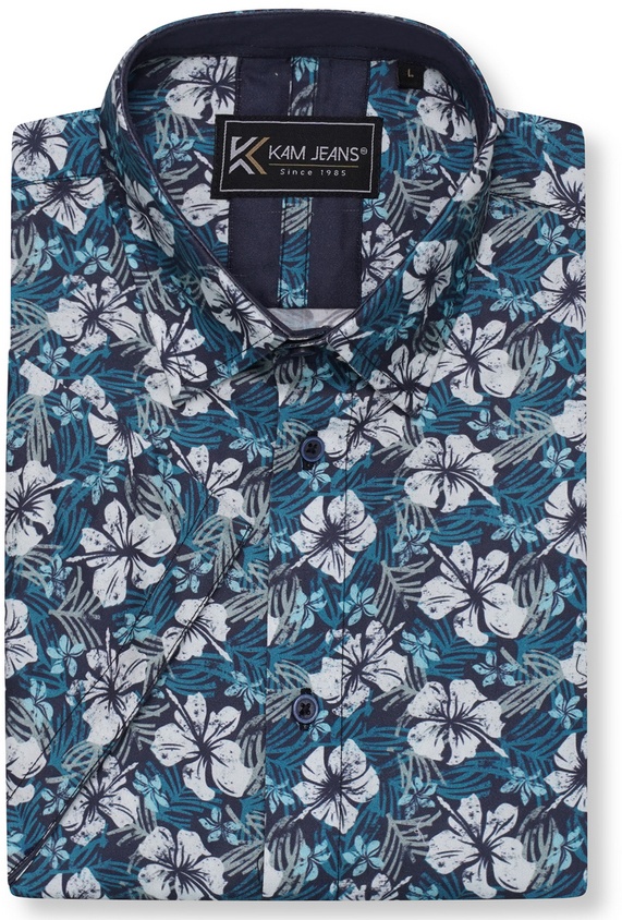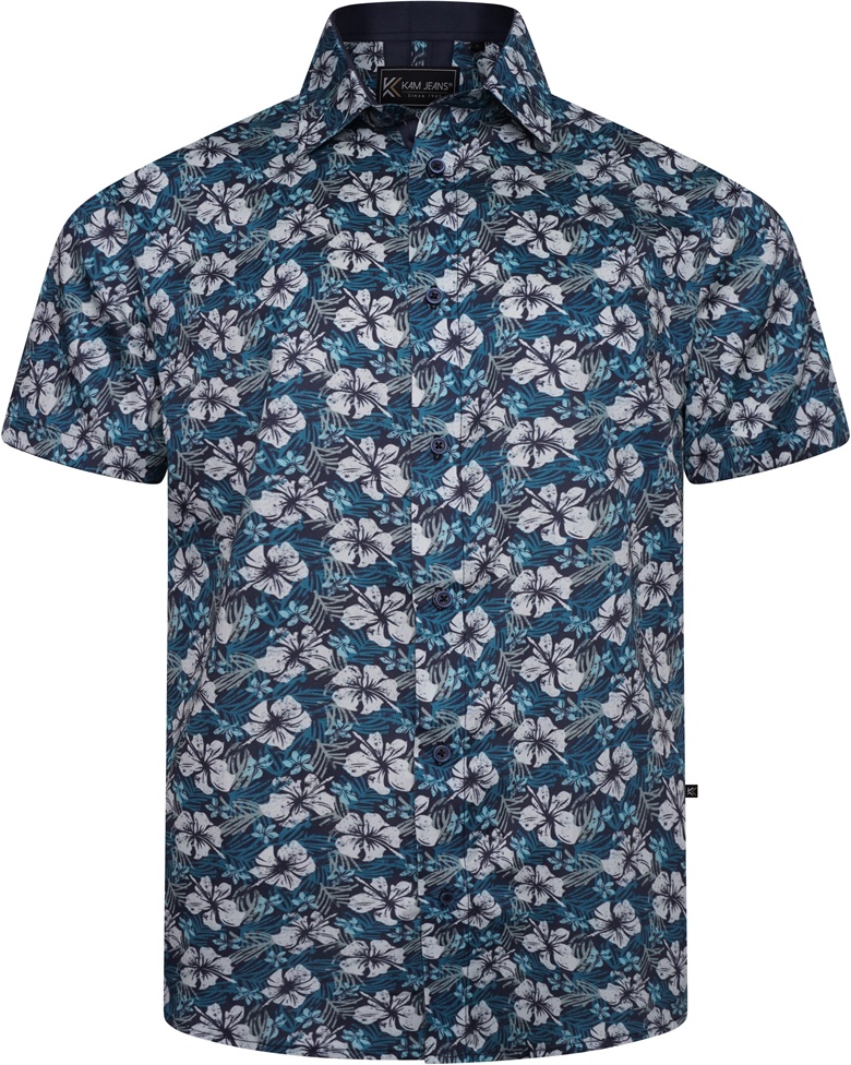 Koko-opas - Kam Jeans 6061 Hibiscus Floral Print Short Sleeve Shirt Midnight Blue