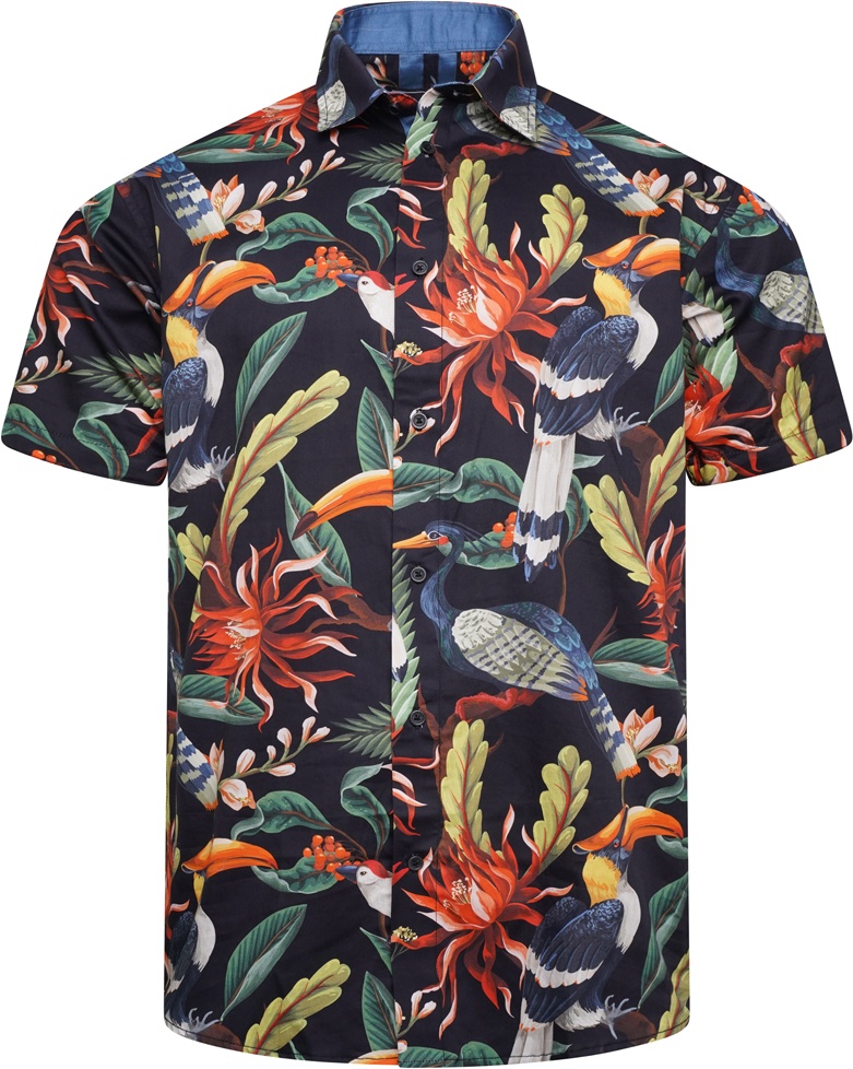Koko-opas - Kam Jeans 6066 Bird Print Short Sleeve Shirt Navy