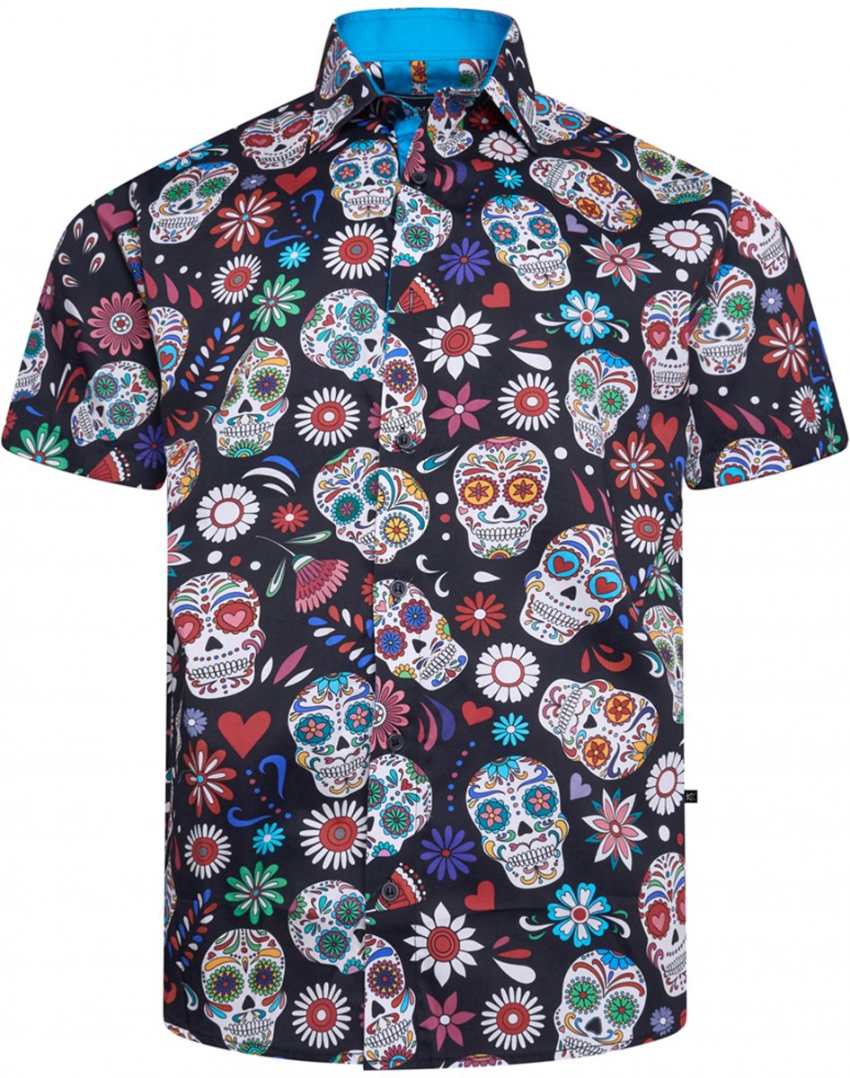 Koko-opas - Kam Jeans 6069 Skull Print Short Sleeve Black