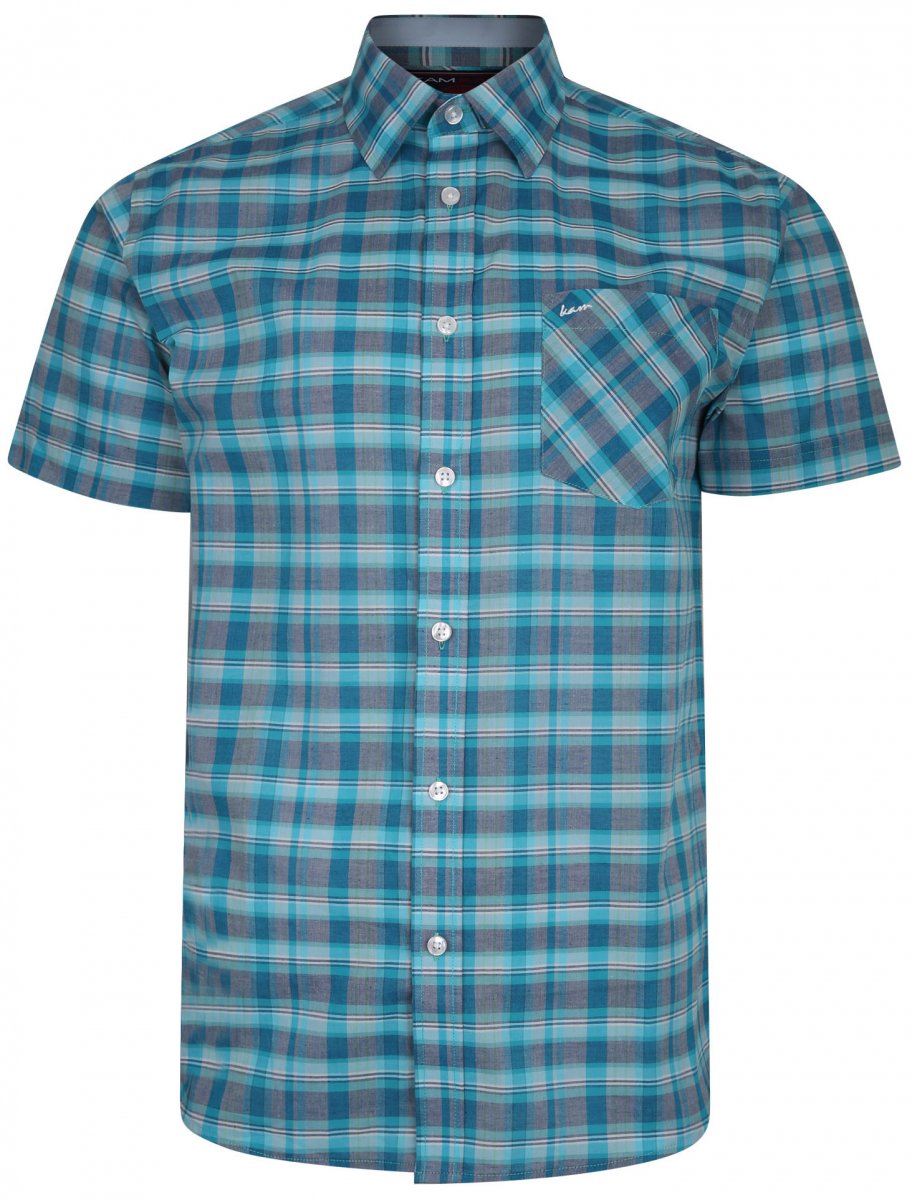 Koko-opas - Kam Jeans 6201 Summer Casual Check Shirt Aqua