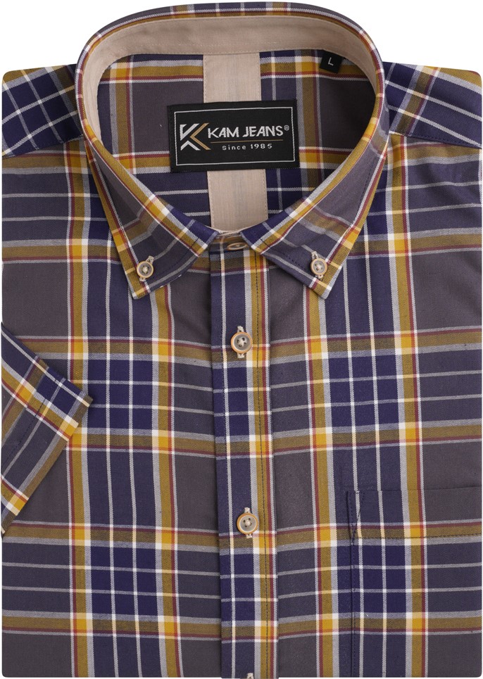 Koko-opas - Kam Jeans 6282 Casual SS Check Shirt Navy