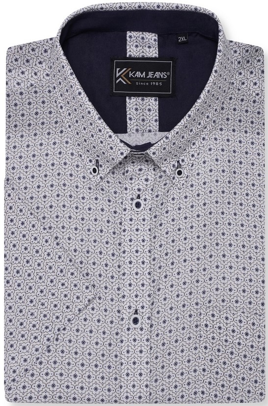 Koko-opas - Kam Jeans 6328 AOP Geo Print Short Sleeve Shirt Charcoal