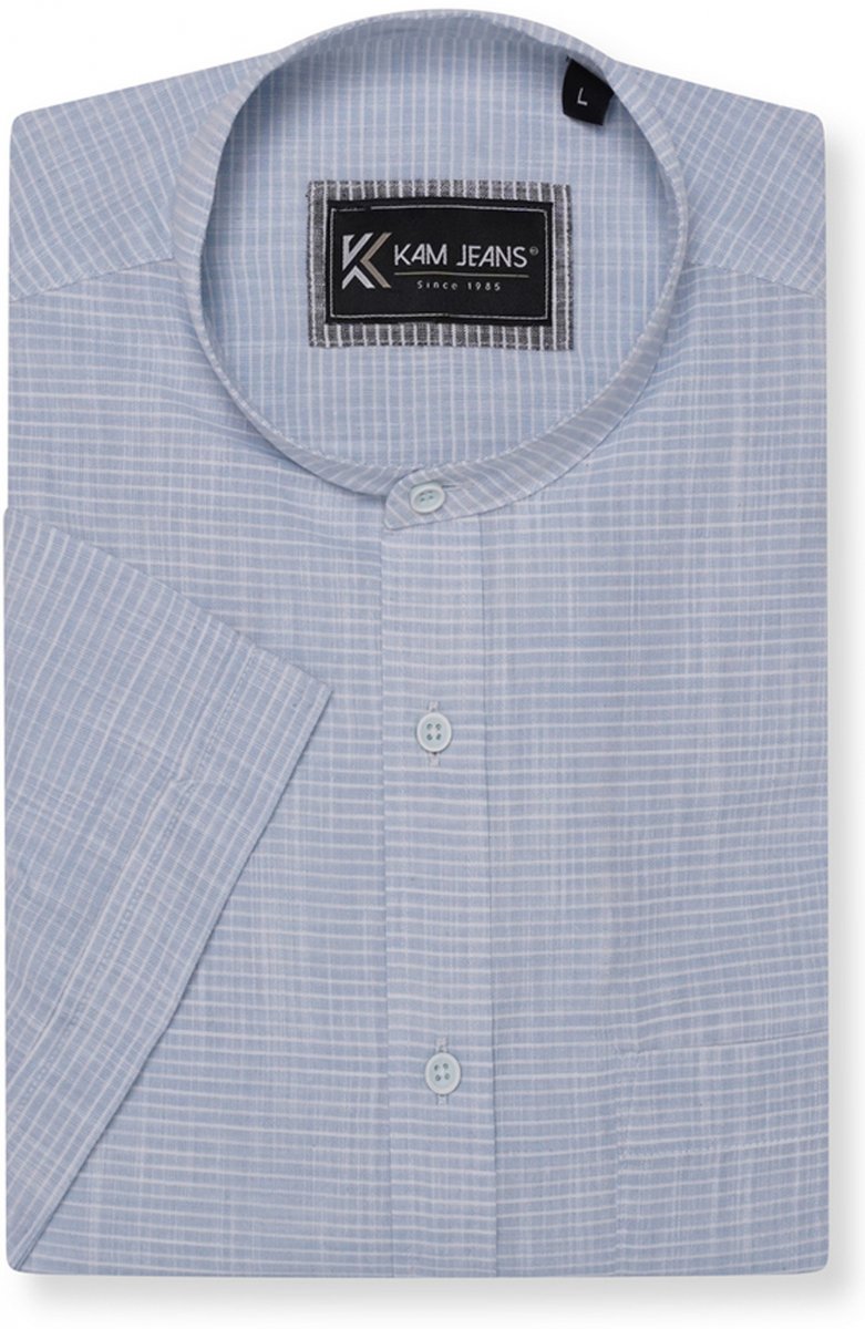 Koko-opas - Kam Jeans 6334 Striped Grandad Short Sleeve Shirt Blue