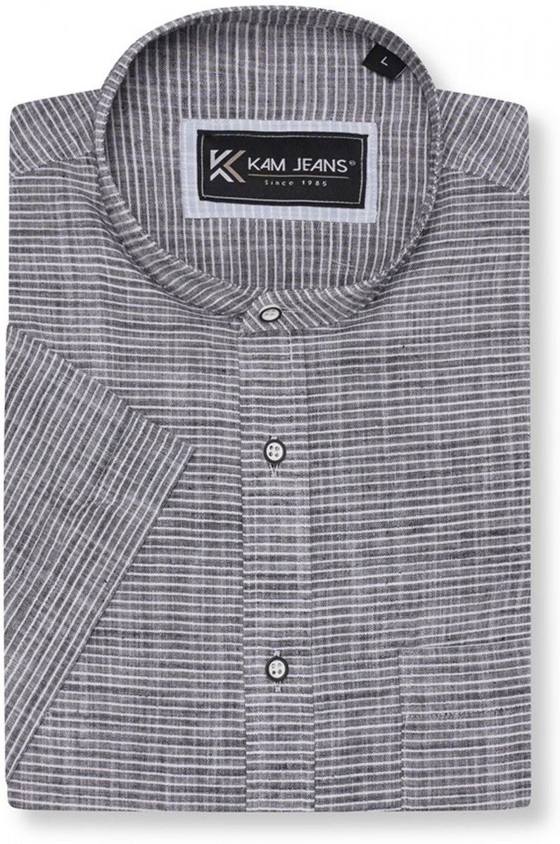 Koko-opas - Kam Jeans 6334 Striped Grandad Short Sleeve Shirt Charcoal