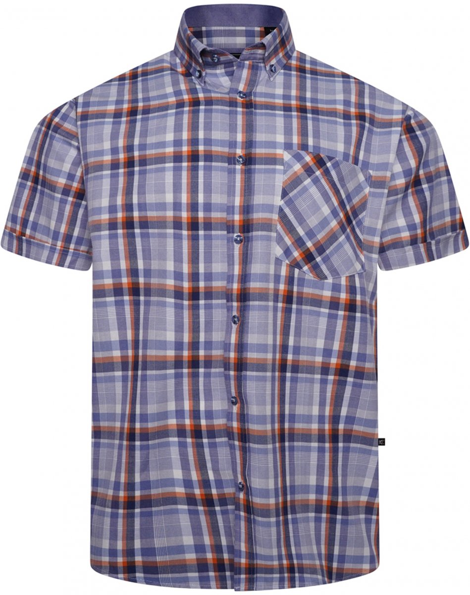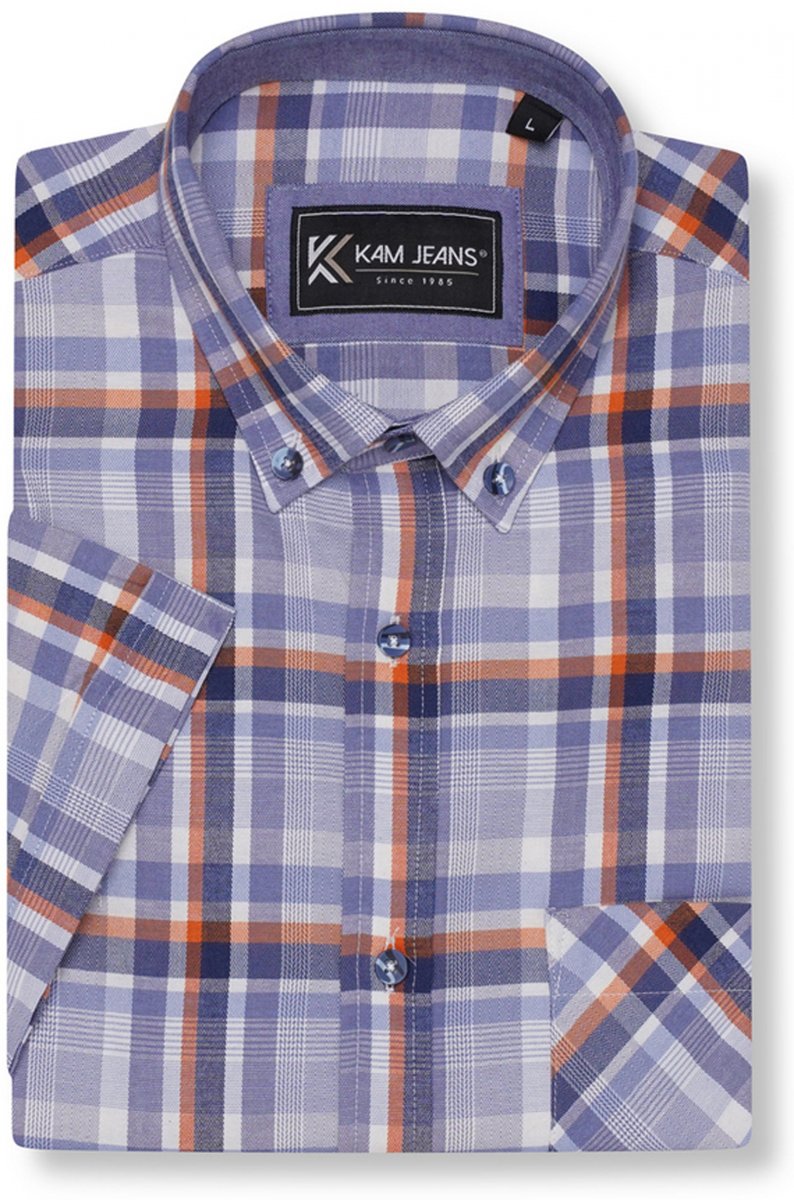 Koko-opas - Kam Jeans 6339 Checked Short Sleeve Shirt Blue