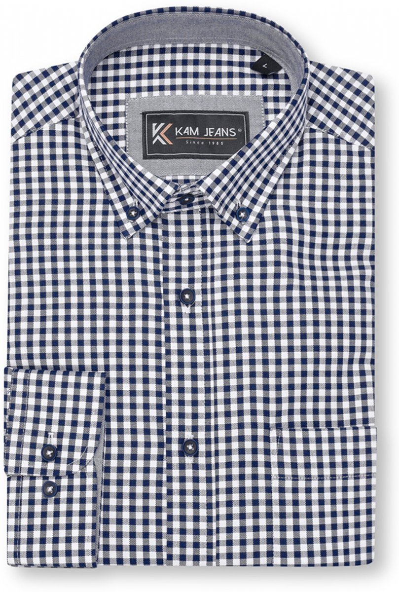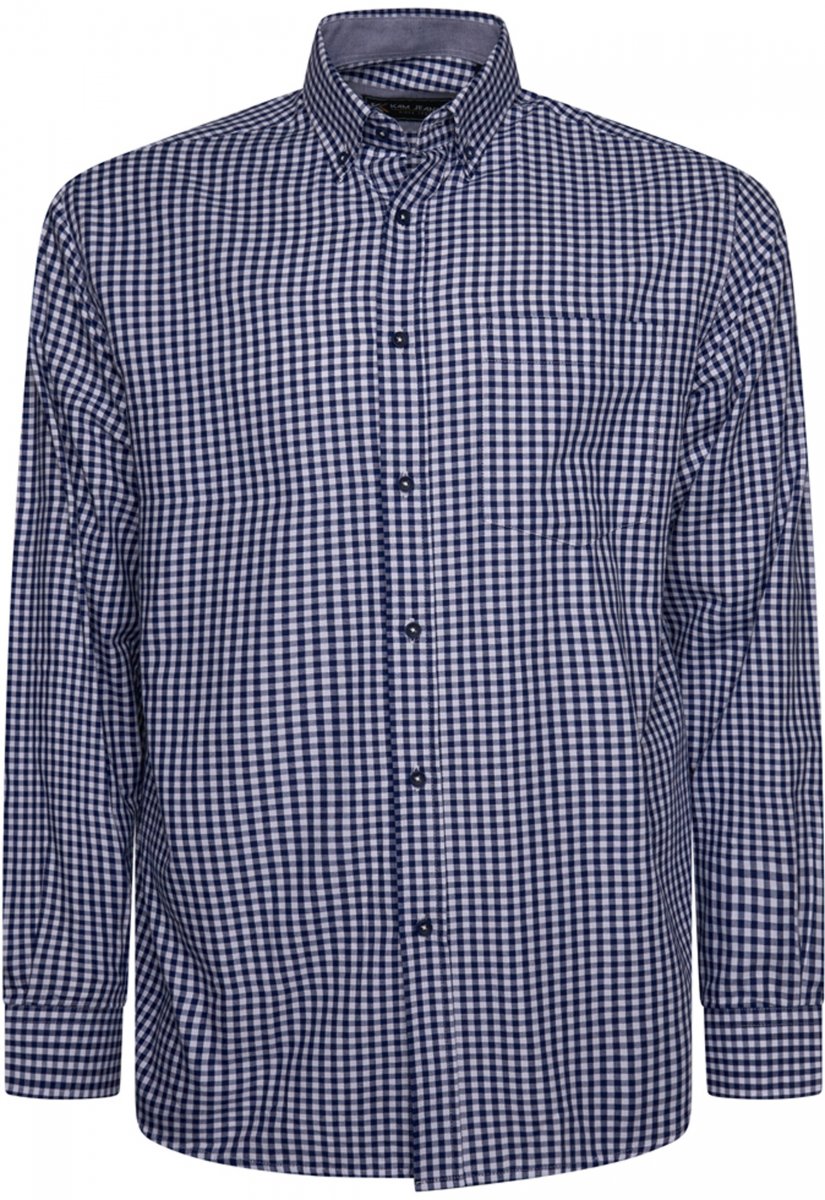 Koko-opas - Kam Jeans 6351 Classic Gingham Shirt Long Sleeve Navy