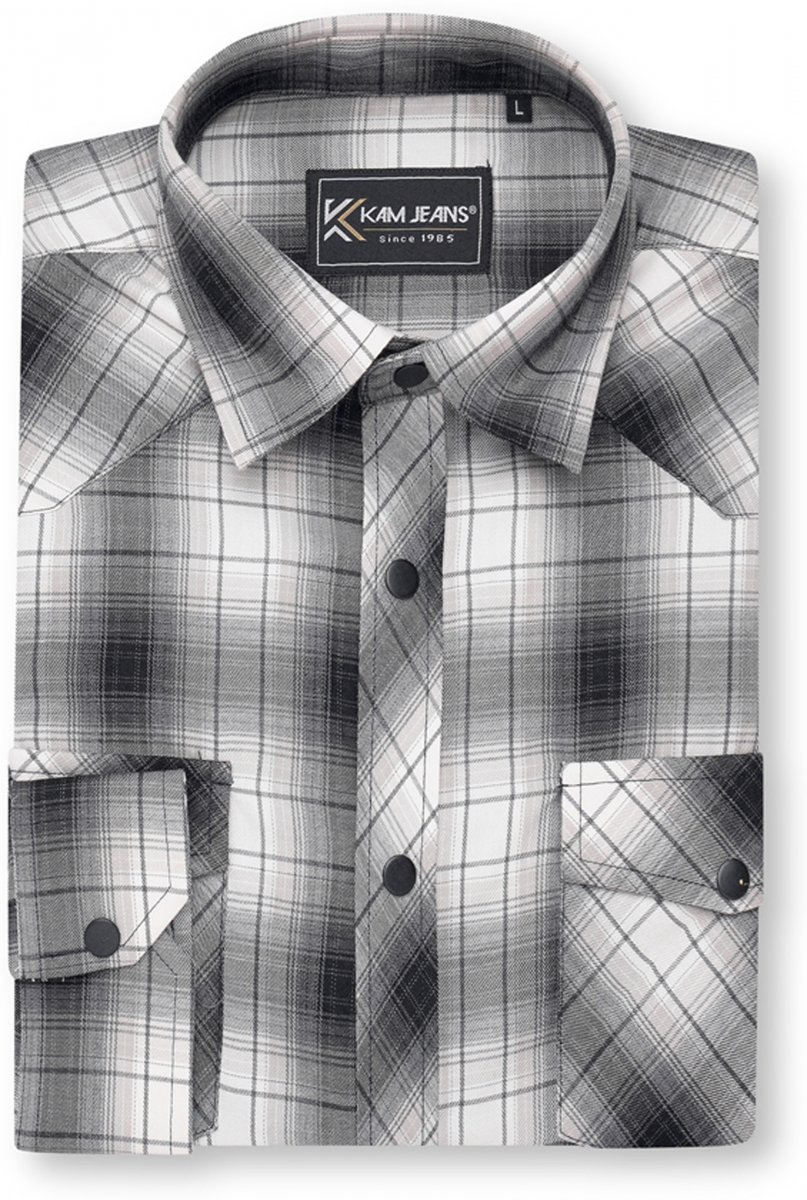 Koko-opas - Kam Jeans 6352 Western Twin Pocket Long Sleeve Shirt Charcoal