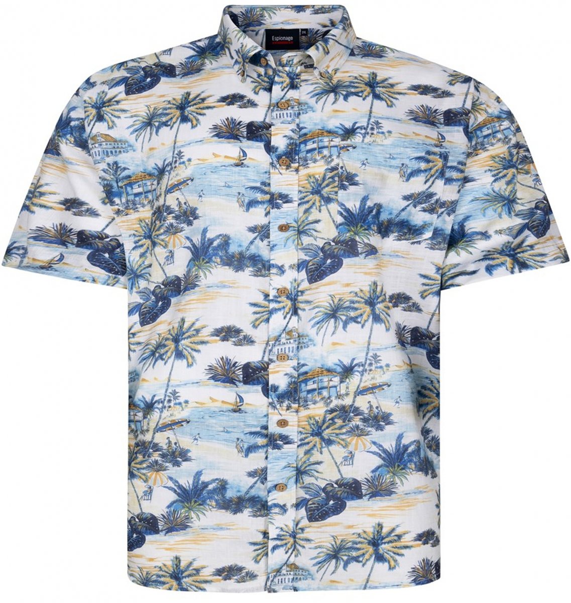 Koko-opas - Espionage SH469 Short Sleeve Palm Printed Shirt Blue/Lemon