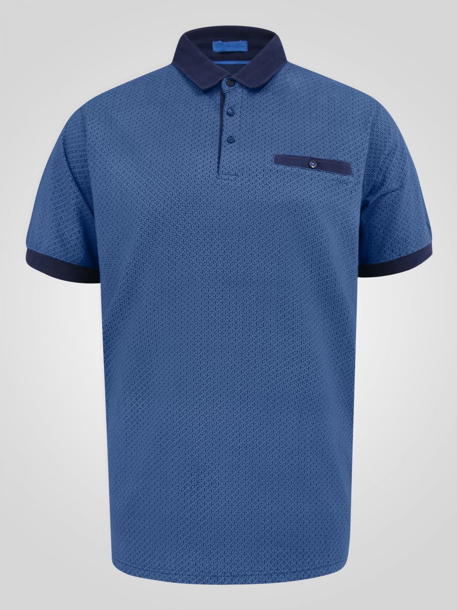 Koko-opas - D555 Murray Printed Jacquard Collar & Cuff Short Sleeve Polo Blue