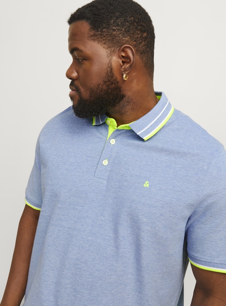 Koko-opas - Jack & Jones PAULOS Short Sleeve Polo Light Blue/NEON