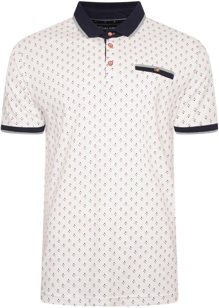 Koko-opas - Kam Jeans 5503 Jersey Polo with All Over Geo Print White