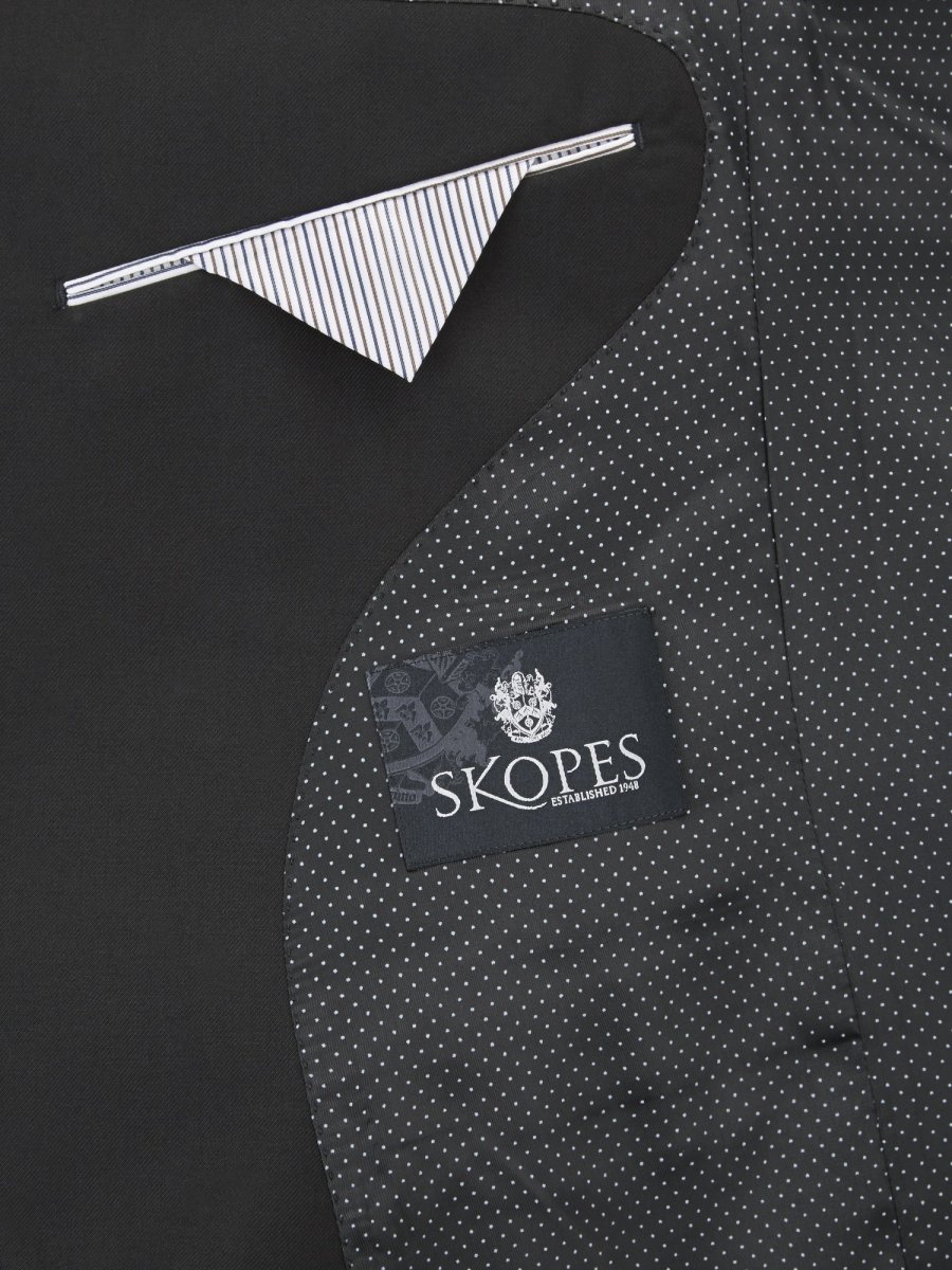 Skopes Madrid Puvun Takki Musta on puvun takki, joka yhdessä Skopes Madrid Puvun Housut Musta muodostaa suurikokoisille miehille suunnitellun miesten puvun. Takki on tunnetun brittiläisen pukuja jälleenmyyvän Skopes-tavaramerkin mallistoa. Takin päällykangas on 80% polyesteria ja 20% viskoosia. Takin vuori on 55% polyesteria ja 45% viskoosia. Takin väri on musta, ja takki tulee puhdistaa kemiallisessa pesussa, sitä ei voi pestä kotona koneessa. Takin päällinen on varustettu rintataskulla, kahdella sivutaskulla sekä kellotaskulla. Takin vuoressa on kaksi napilla suljettavaa taskua. Tätä takkia on kaupassamme myytävänä brittiläisissä ko'oissa 50-62, joka vastaa pohjoismaalaisia kokoja 60-72. Katso takkien kokotaulukosta mitat sinulle sopivan koon löytämiseksi.