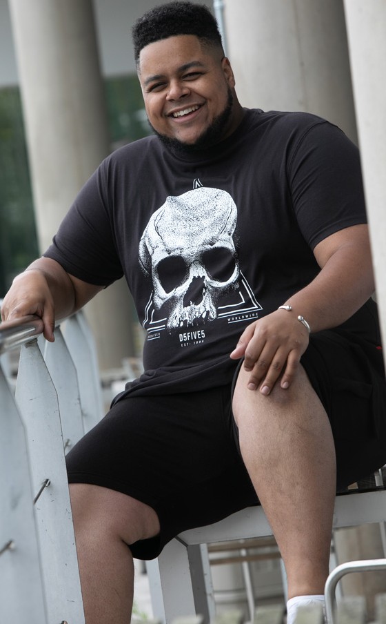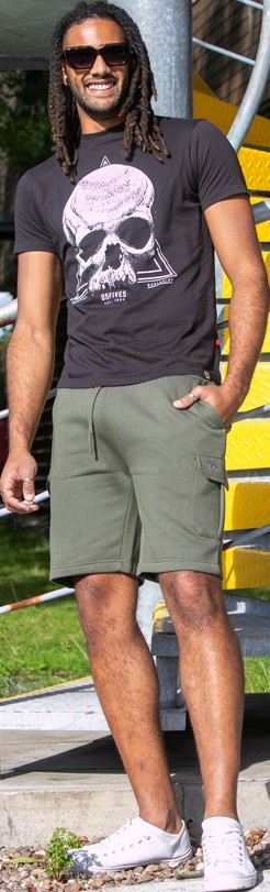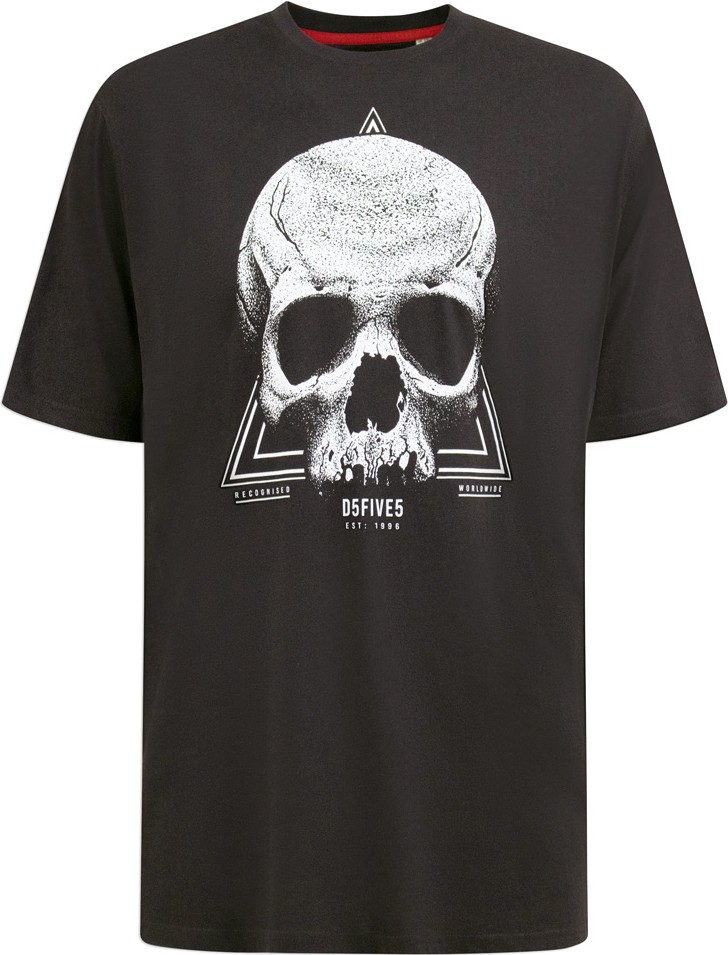 Koko-opas - D555 Hucknall Skull Monochrome Printed Crew Neck T-shirt Washed Black