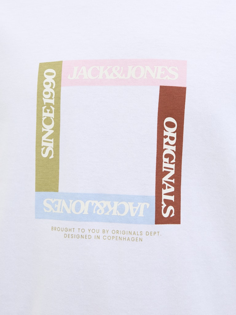 Koko-opas - Jack & Jones Vira Branding Crew Neck T-Shirt Bright White