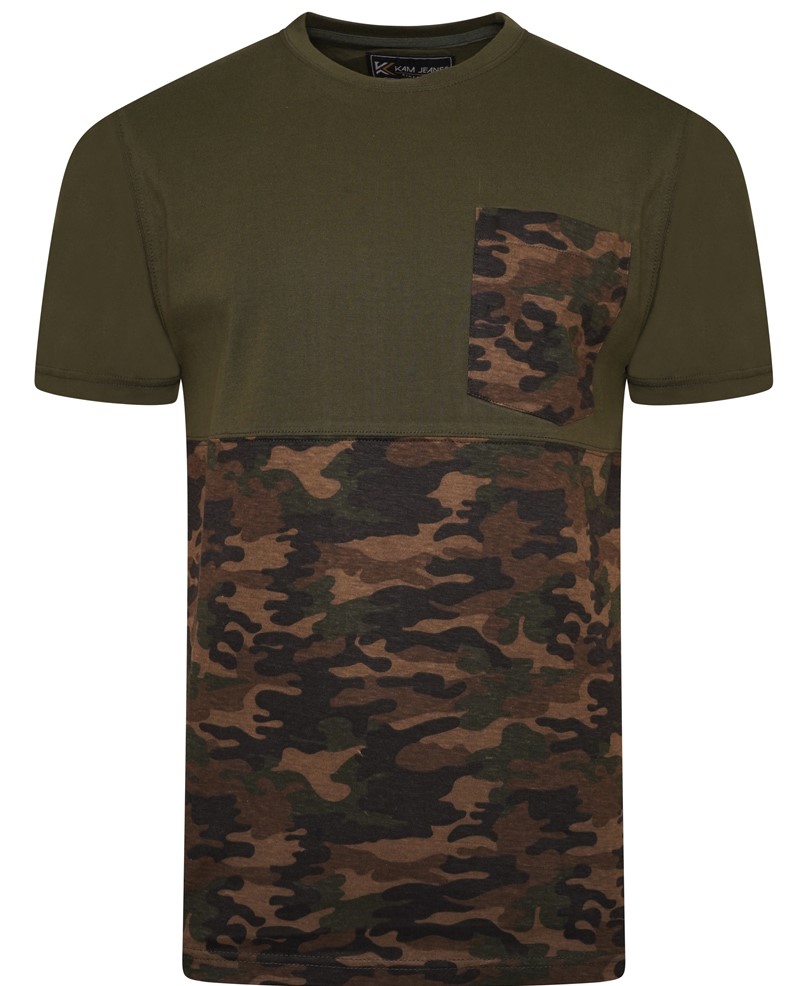 Koko-opas - Kam Jeans 5700 Camo Panelled T-Shirt Khaki