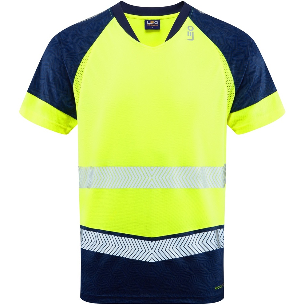 Koko-opas - Leo Forda Ecoviz Performance+ Dual Colour T-Shirt Hi-Vis Yellow/Navy Print