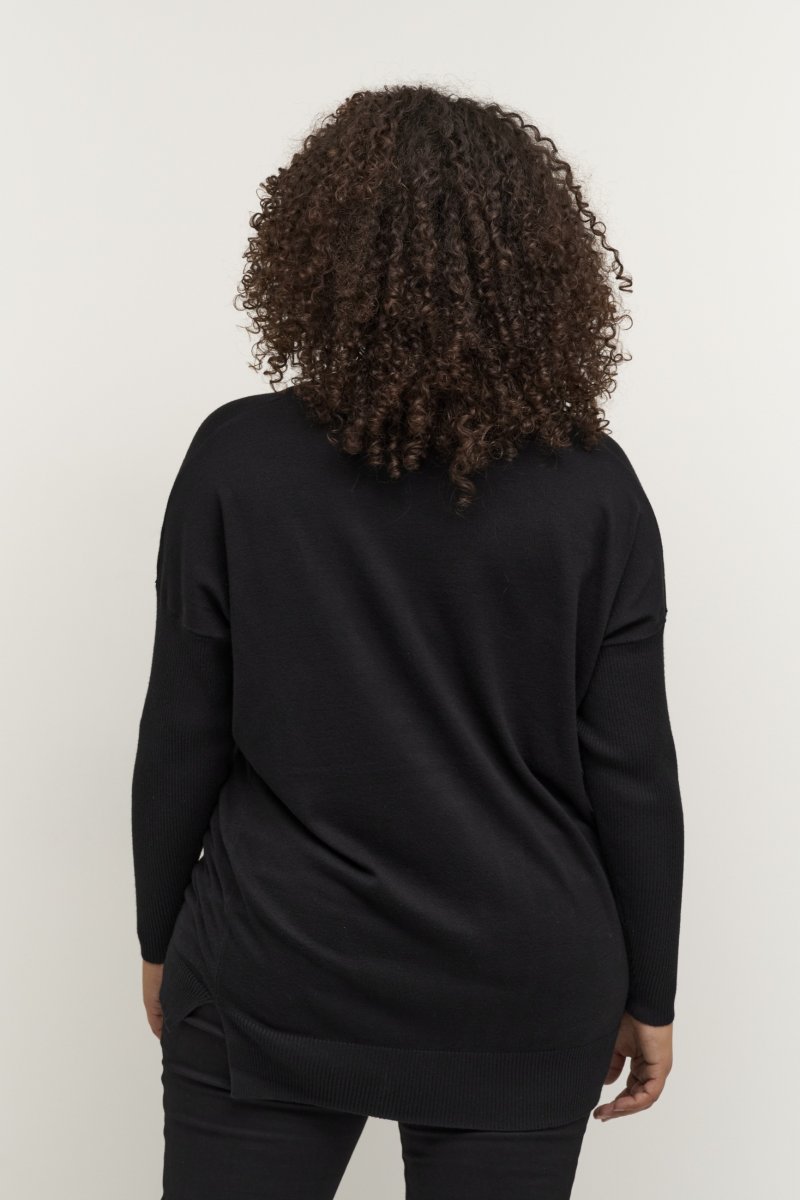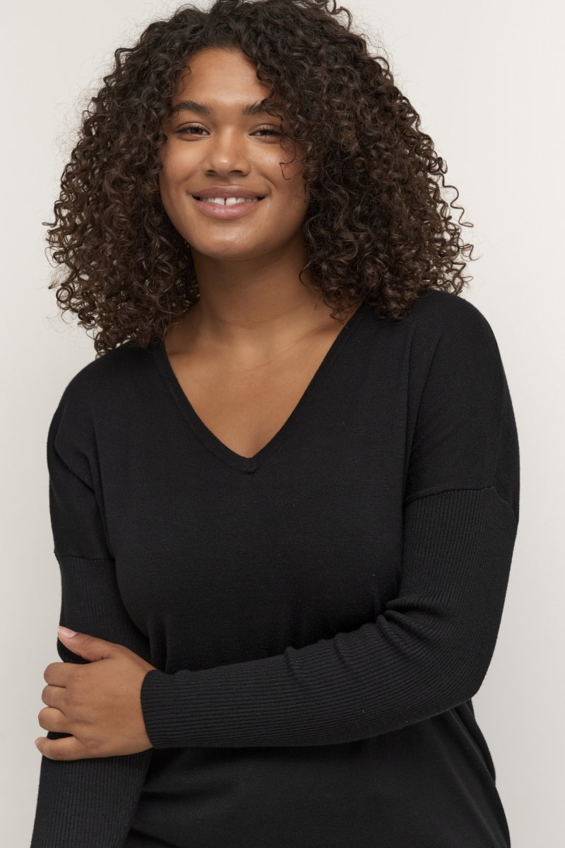 Naisten collegepaitaSaatavilla meiltä kokoina 42–56Kaffe Curve-tuotemerkilläMateriaali: 80 % viskoosi ja 20 % nylonVäljä mitoitusVäri: mustaKatso koko-opas klikkaamalla tästä