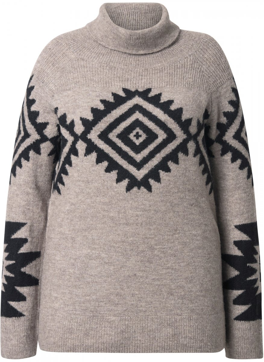 Koko-opas - Ulla Popken Aztec Pattern Turtleneck Sweater Pebble Grey
