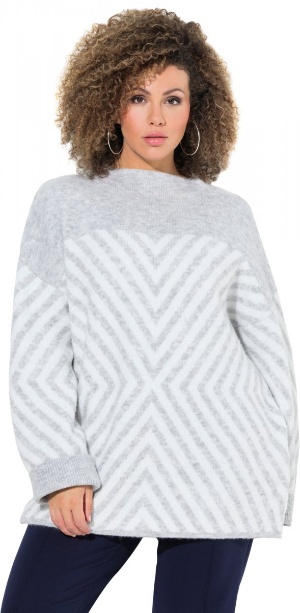 Koko-opas - Ulla Popken Graphic Stripe Long Sleeve Turtleneck Sweater Silver Melange