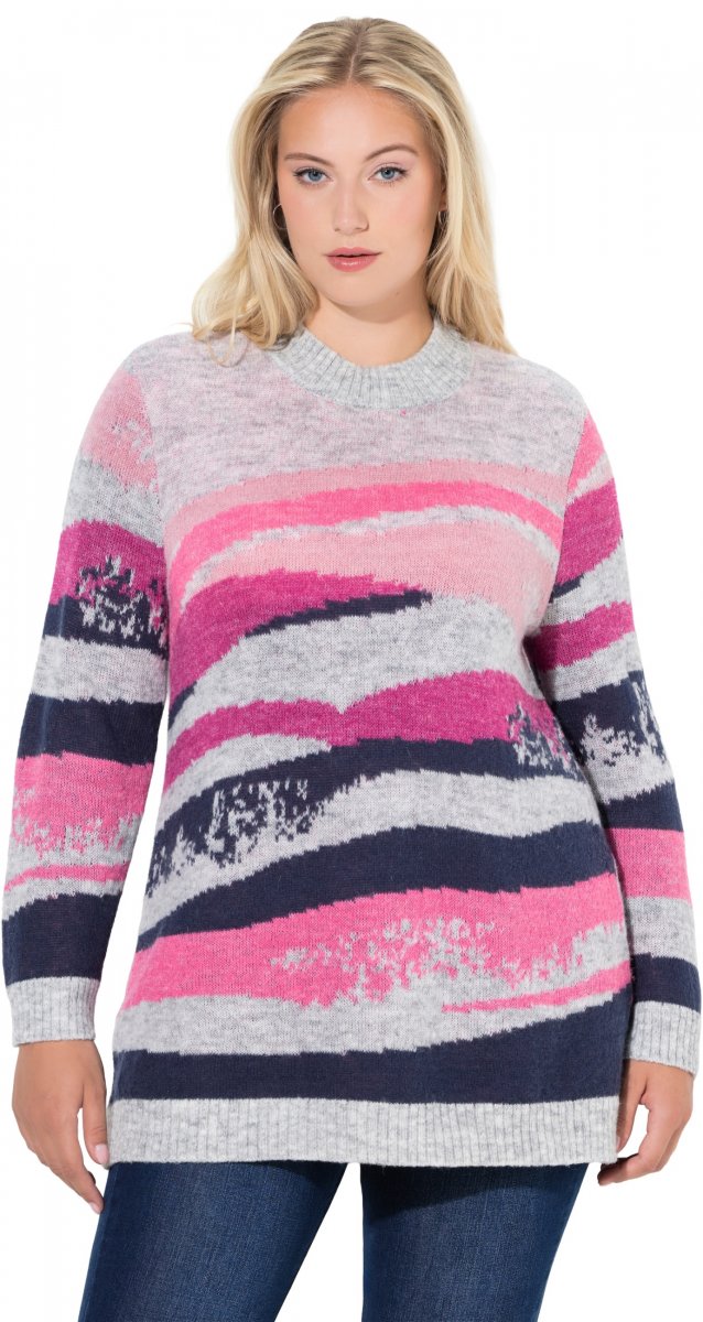 Koko-opas - Ulla Popken Landscape Stripe Sweater Light Grey Melange