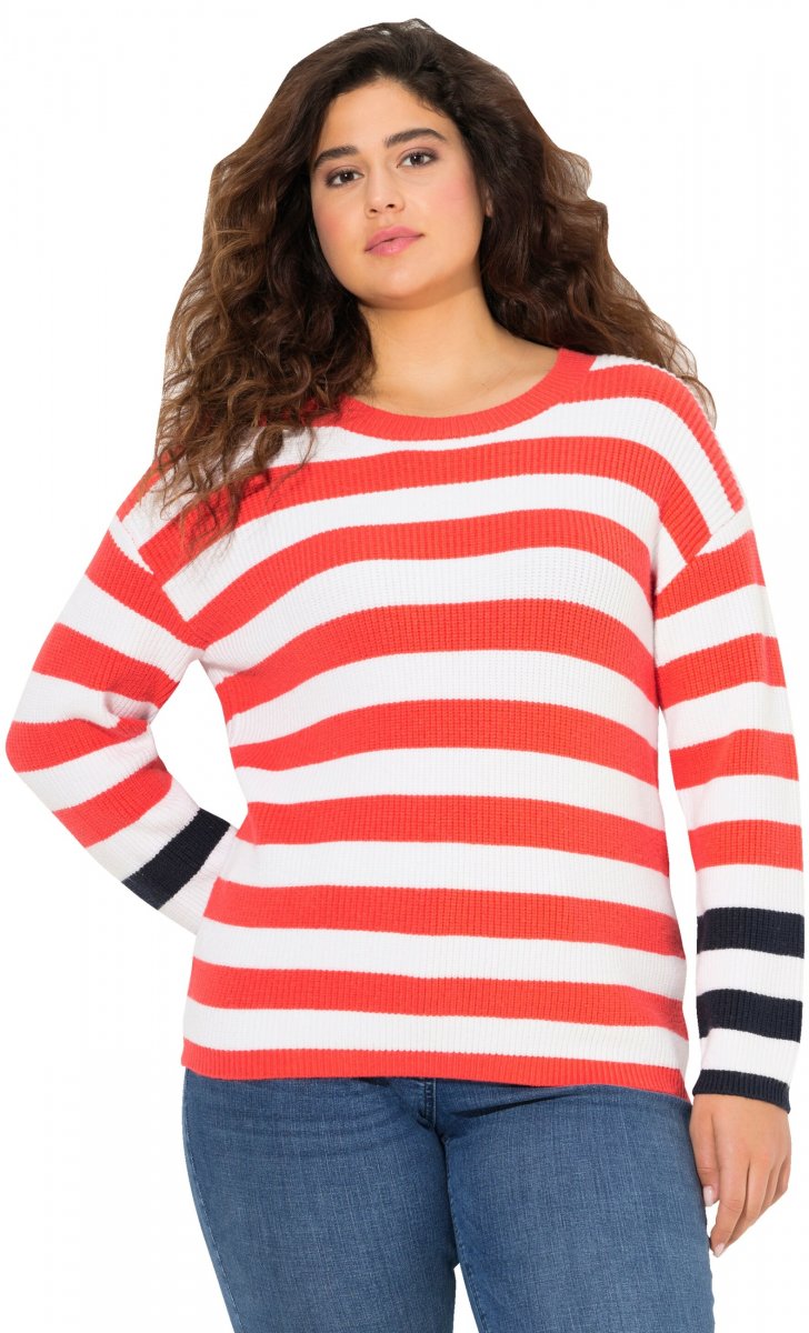 Koko-opas - Ulla Popken Mixed Stripe Long Sleeve Sweater Hibiscus Red