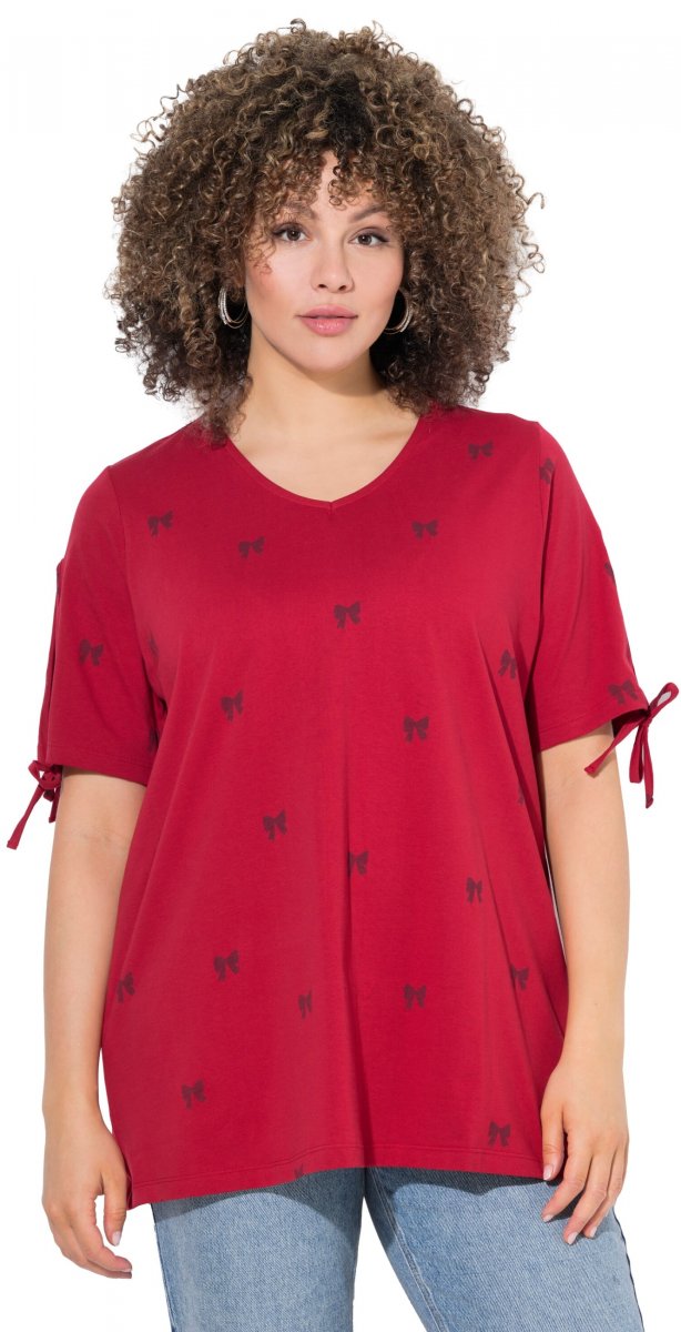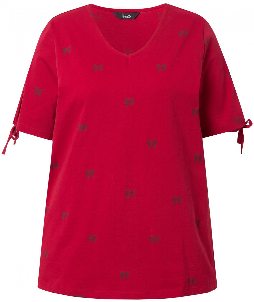 Koko-opas - Ulla Popken Bow Print Split Sleeve Tee Ruby Red