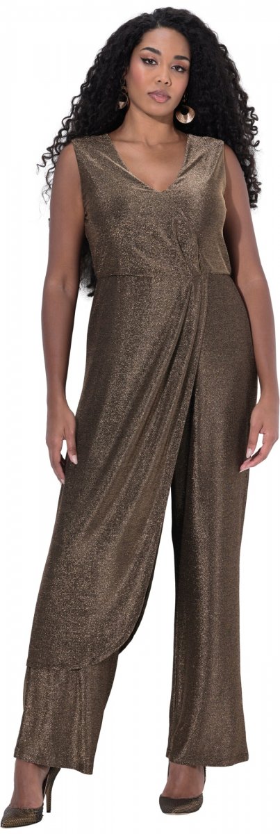 Koko-opas - Ulla Popken Draped Sleeveless Glitter Jumpsuit Pearl White