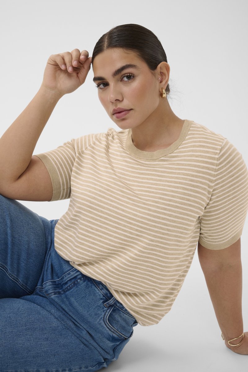 Kaffe Curve Lizzy Knit T-Shirt Feather Melange/Chalk Fine Stripe