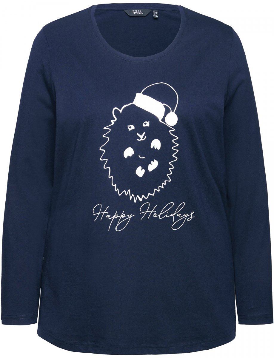 Ulla Popken Metallic Graphic Holiday Tee Navy