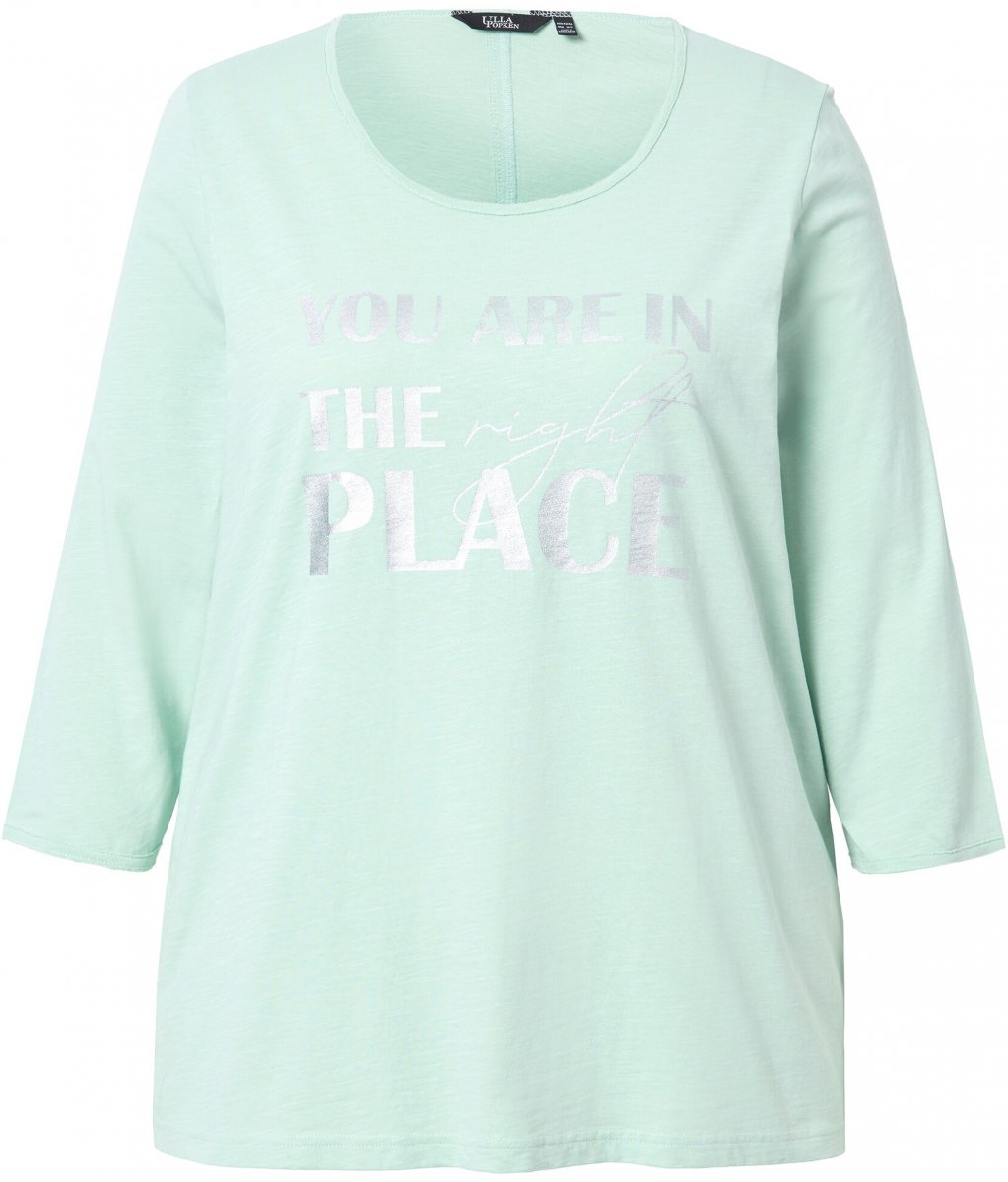 Koko-opas - Ulla Popken Metallic Lettering 3/4 Sleeve Tee Mint Green