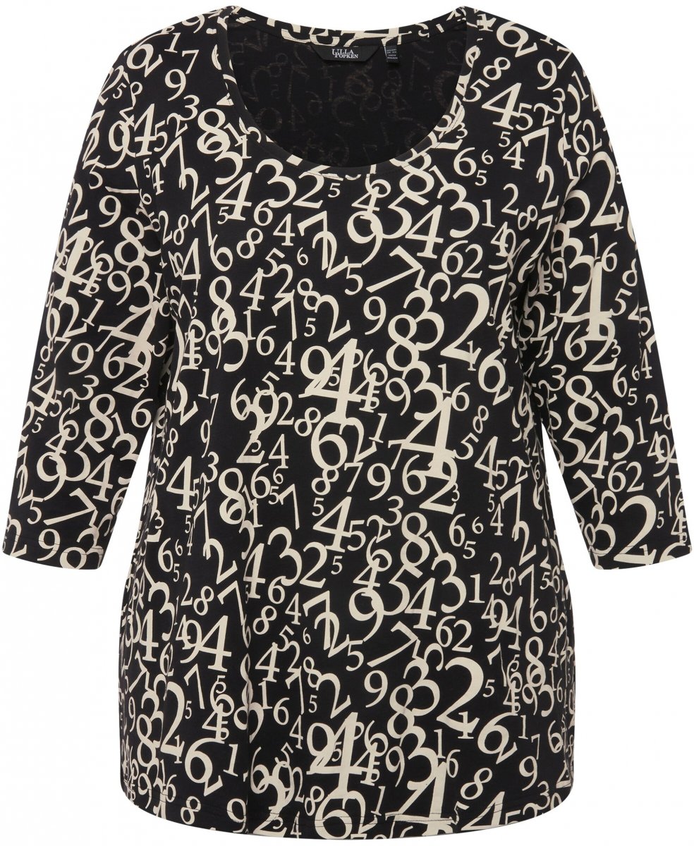 Ulla Popken Number Print 3/4 Sleeve Tee Black