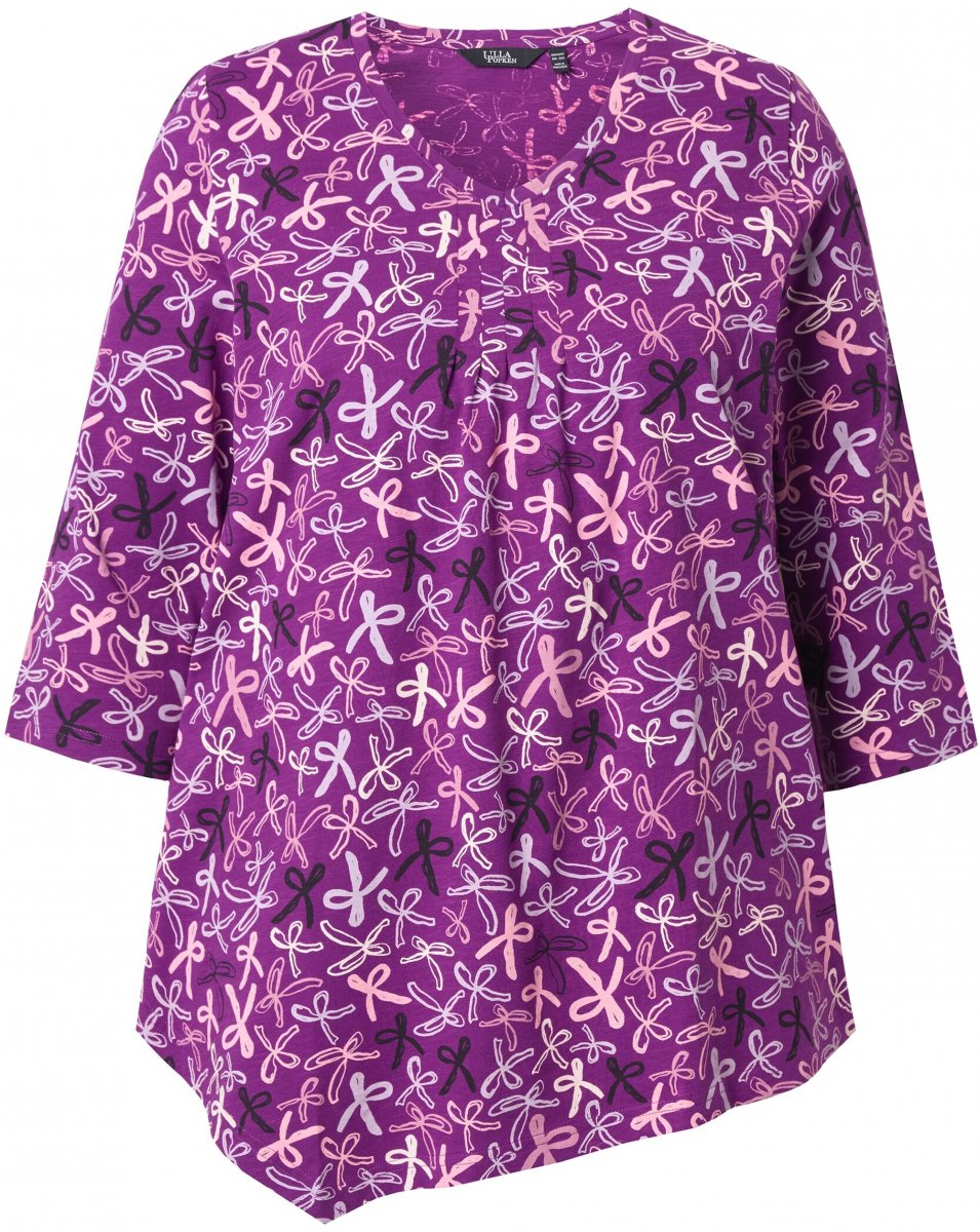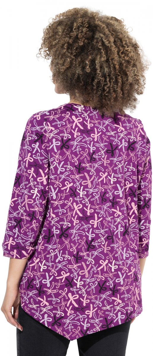 Koko-opas - Ulla Popken Ribbon Print 3/4 Sleeve Asymmetric Tee Light Plum