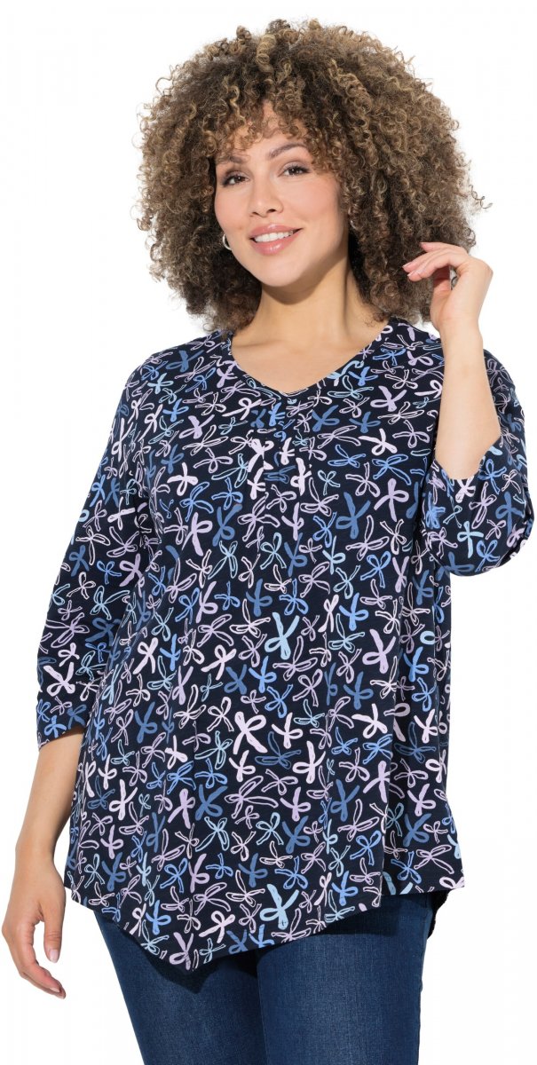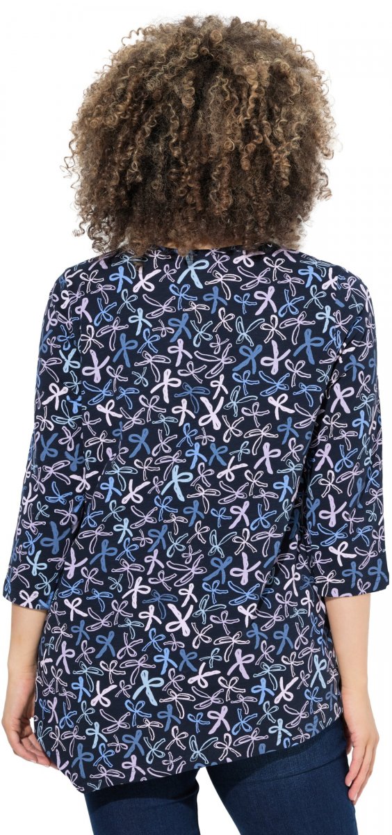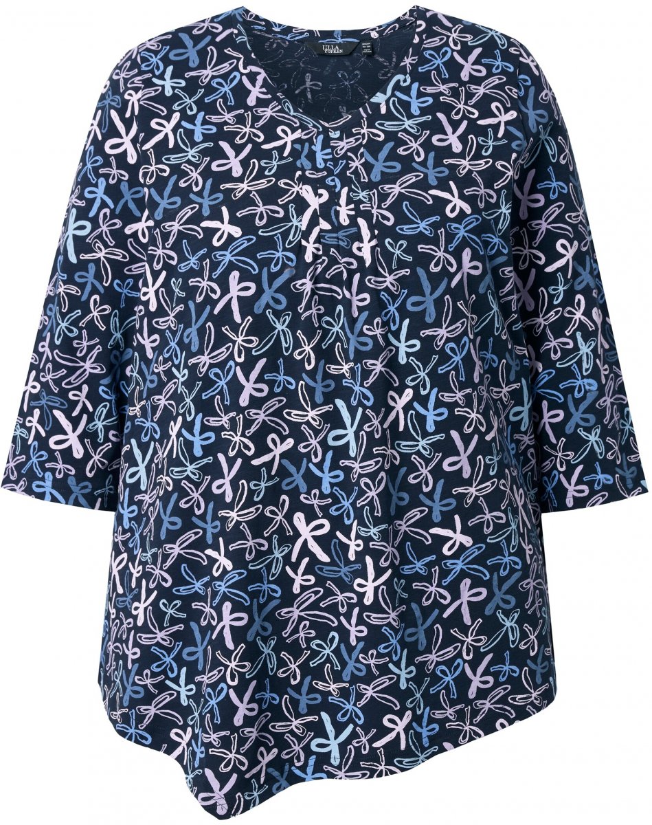 Koko-opas - Ulla Popken Ribbon Print 3/4 Sleeve Asymmetric Tee Navy