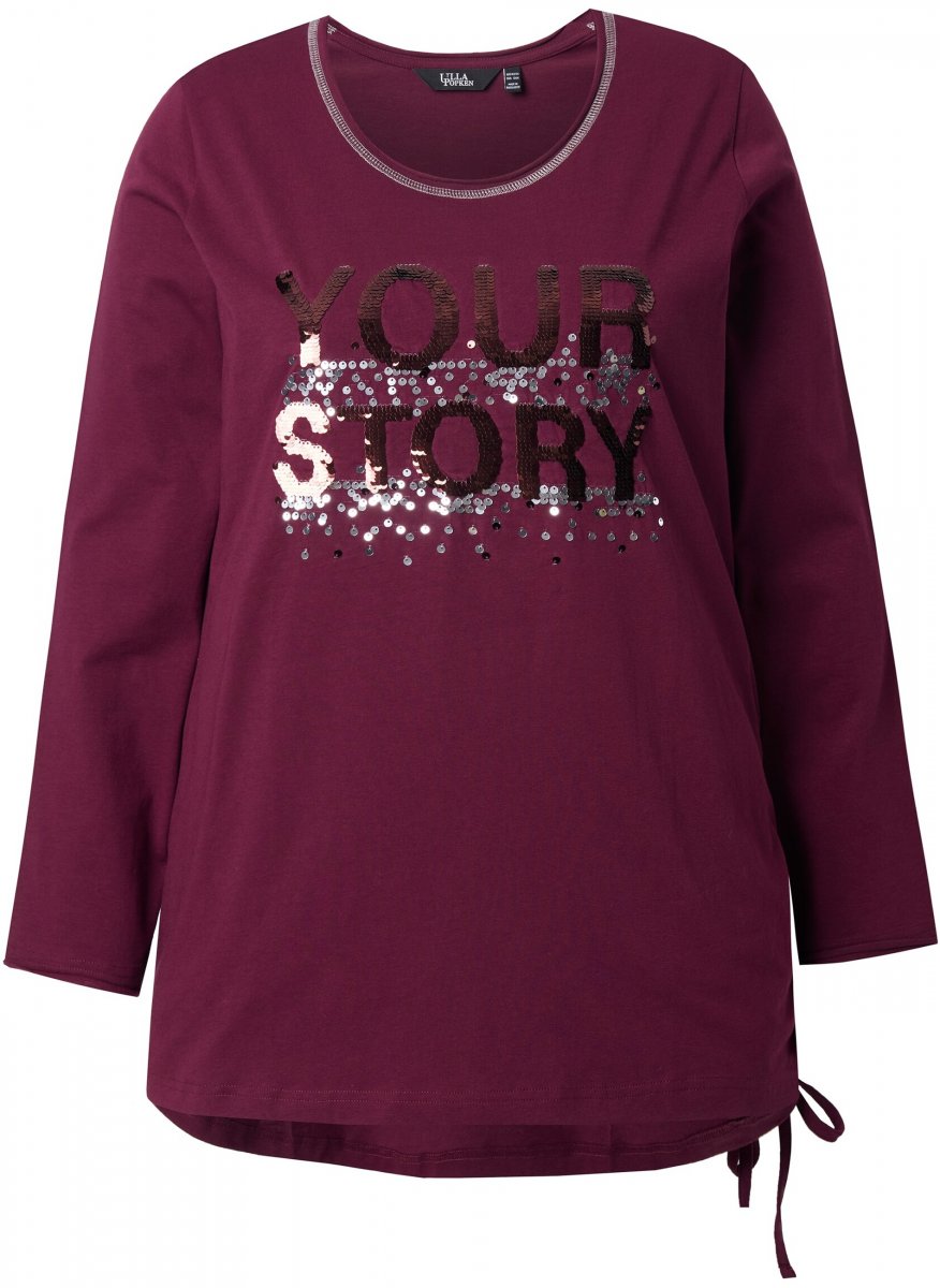 Koko-opas - Ulla Popken Your Story Sequined Long Sleeve Tunic Tee Dark Ruby
