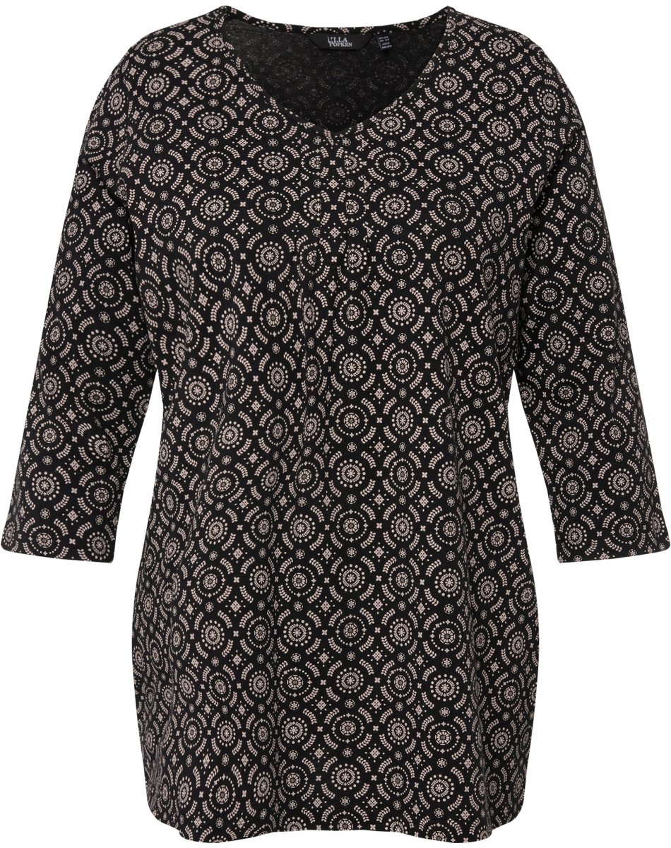 Ulla Popken 3/4 Sleeve Geometric Graphic Tee Black