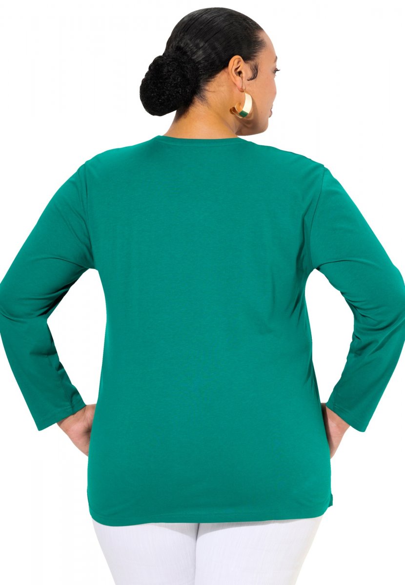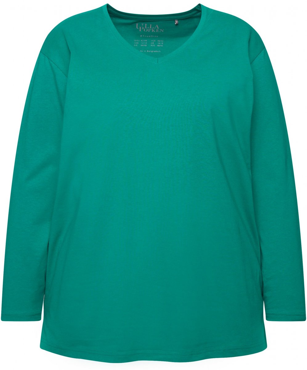 Ulla Popken Back To Basics V-Neck Relaxed Fit Cotton Tee Emerald Green