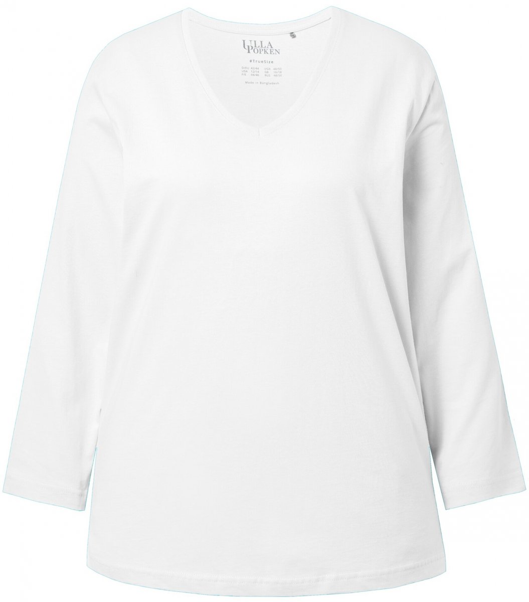 Koko-opas - Ulla Popken Back To Basics V-Neck Relaxed Fit Cotton Tee Snow White