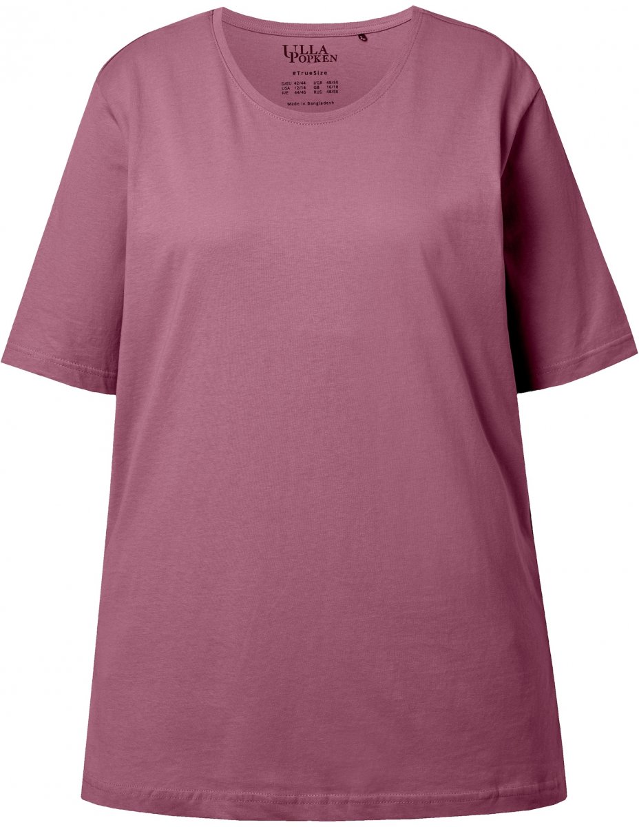 Ulla Popken Basic Round Neck Short Sleeve Relaxed Fit T-Shirt Dark Rose Red