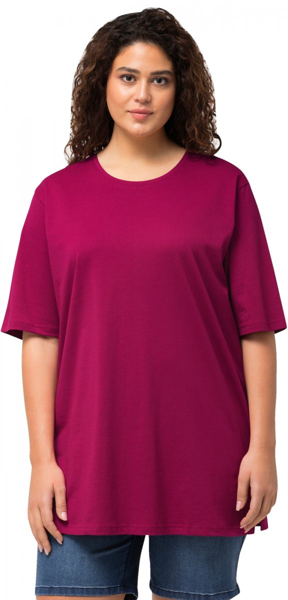 Ulla Popken Basic Round Neck Short Sleeve Relaxed Fit T-Shirt Magnolia Red