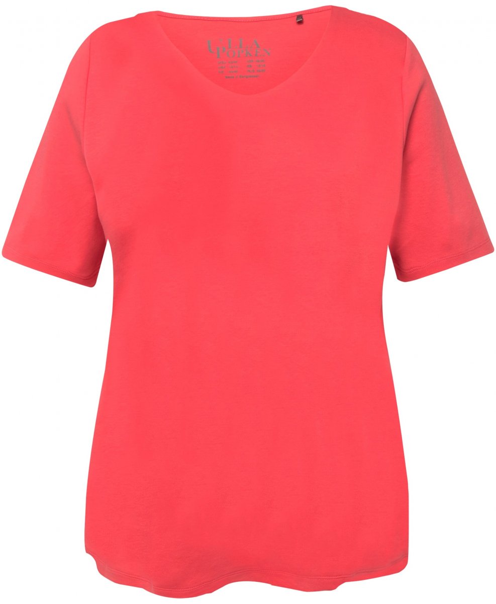 Ulla Popken Double Layer Rounded V-Neck Slim Fit Tee Dark Coral