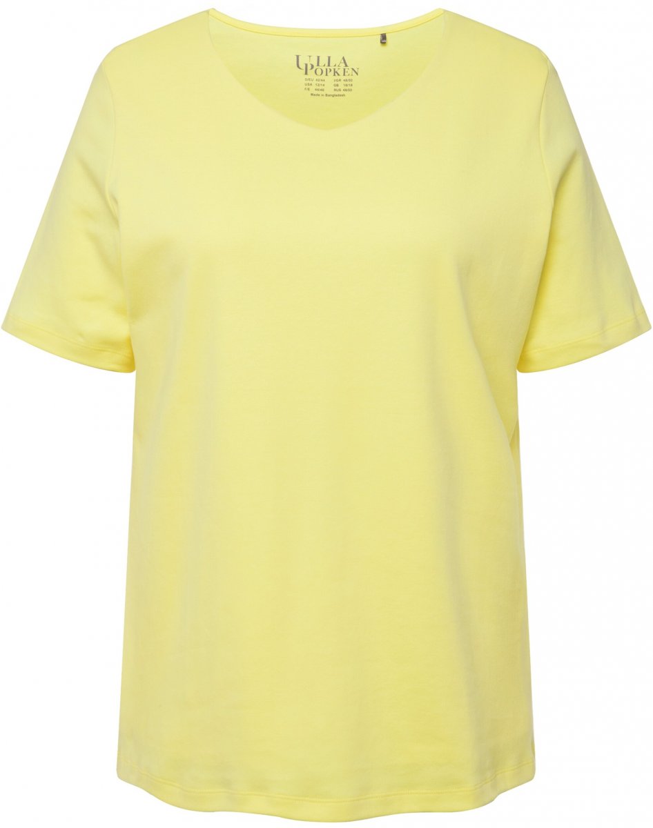 Koko-opas - Ulla Popken Double Layer Rounded V-Neck Slim Fit Tee Lemon Yellow