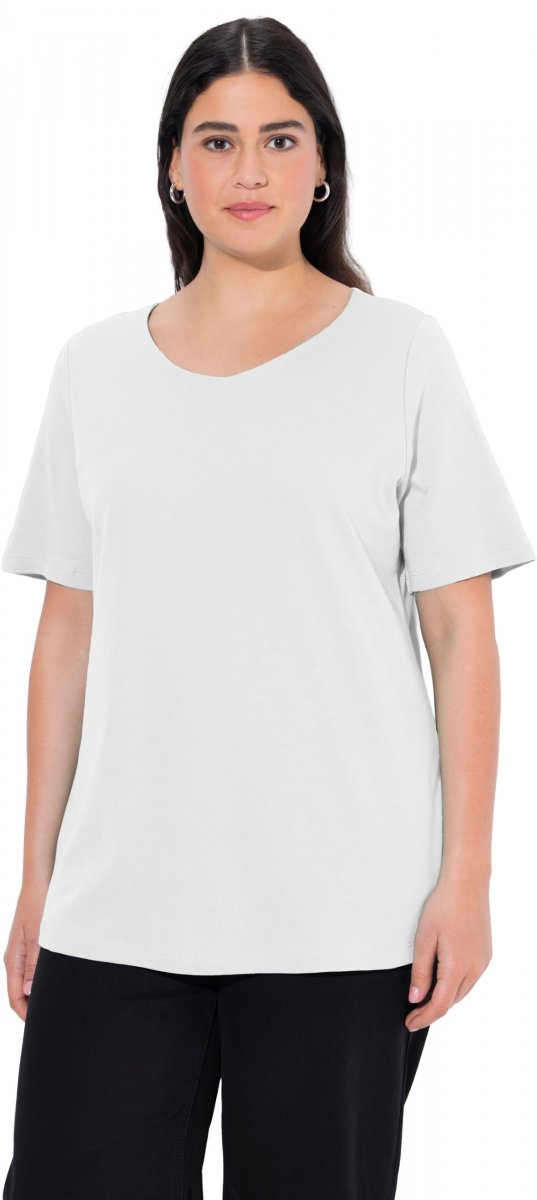 Koko-opas - Ulla Popken Double Layer Rounded V-Neck Slim Fit Tee Snow White